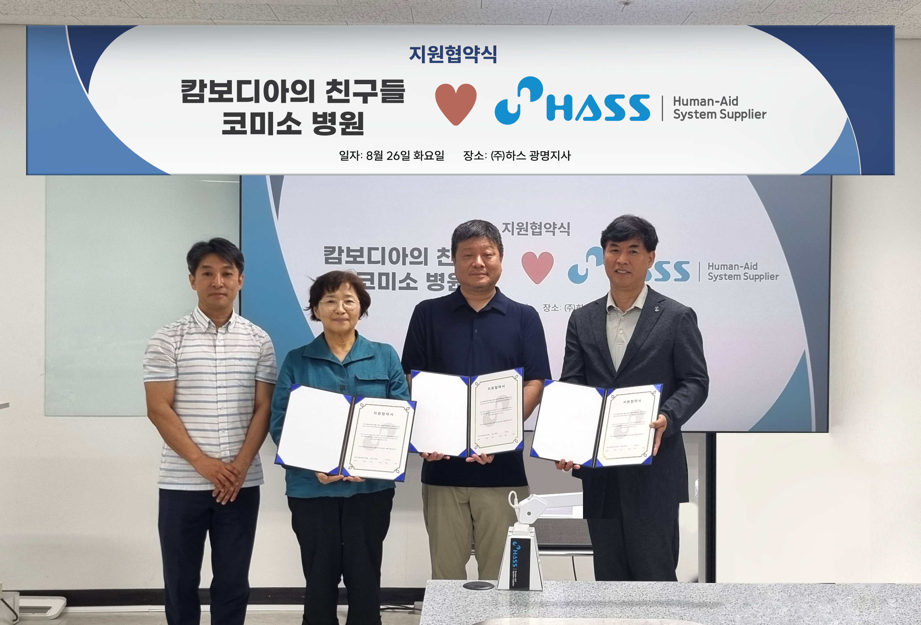 Moving forward, HASS (Human Aid System Supplier) will continue to fulfill its social responsibility as a company that contributes to humanity