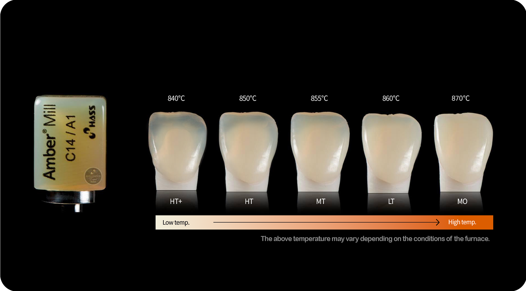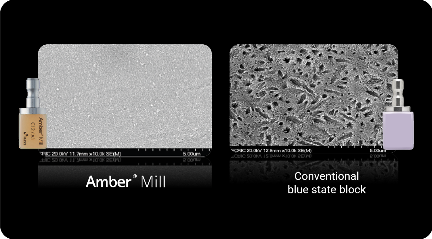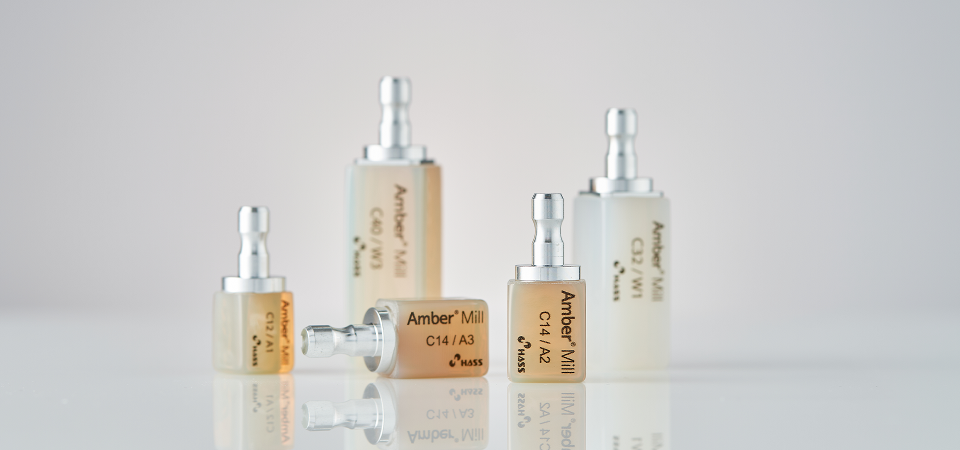 • Amber® Mill is engineered to closely replicate the natural translucency of enamel.