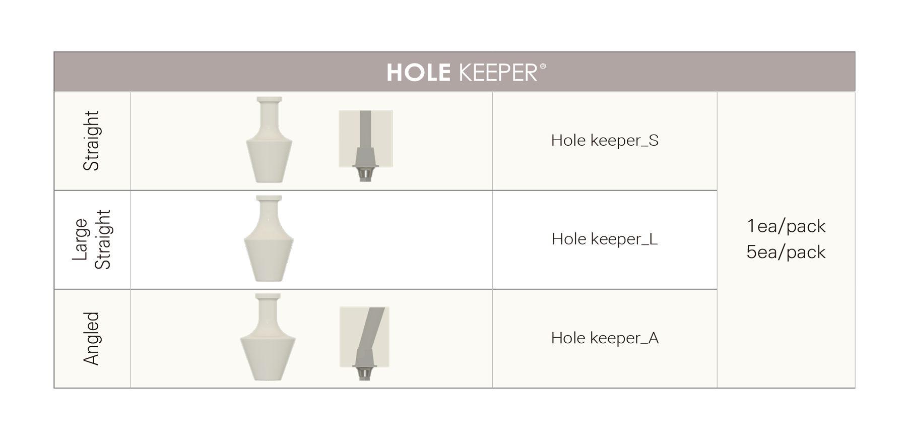 Dimensions of the Hole Keeper