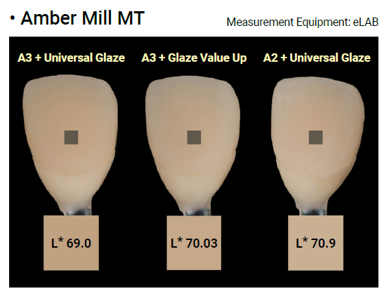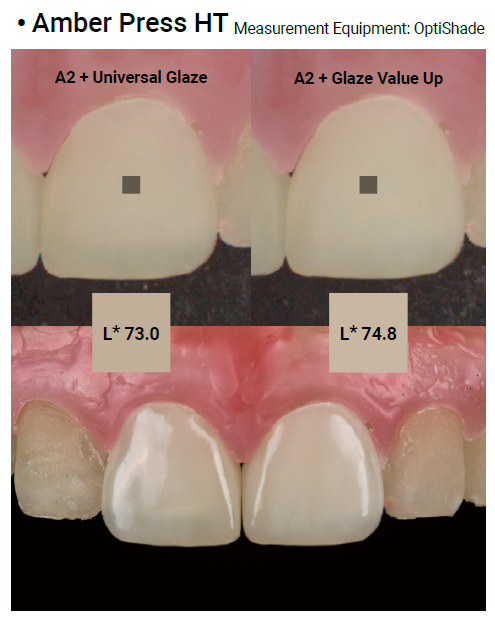 Restorations with high saturation or low brightness can be adjusted to the target shade.