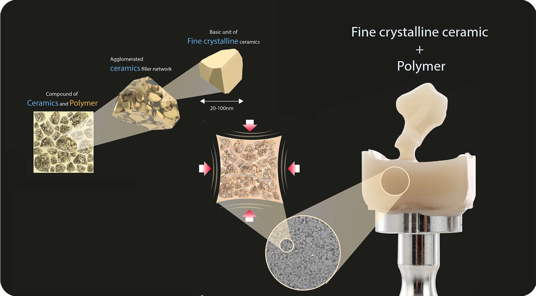 Through an innovative cross-linking technology between microcrystalline ceramics and polymers,