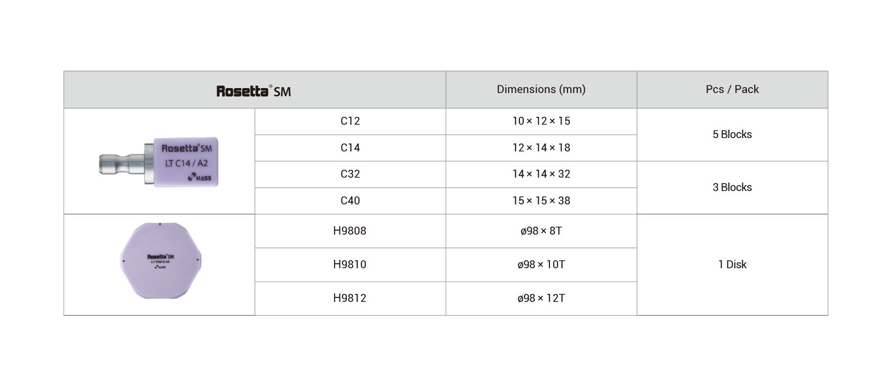 As HASS’s best-selling lithium disilicate block, Rosetta SM has earned the trust of clinicians and technicians worldwide for its consistent performance and esthetic excellence.