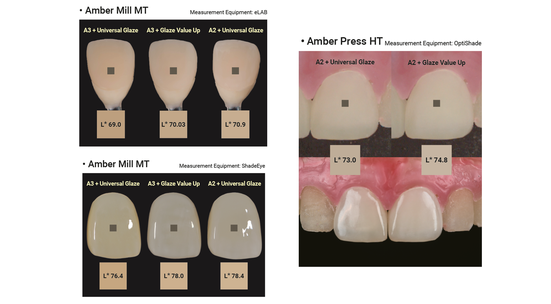 Restorations with high saturation or low brightness can be adjusted to the target shade.