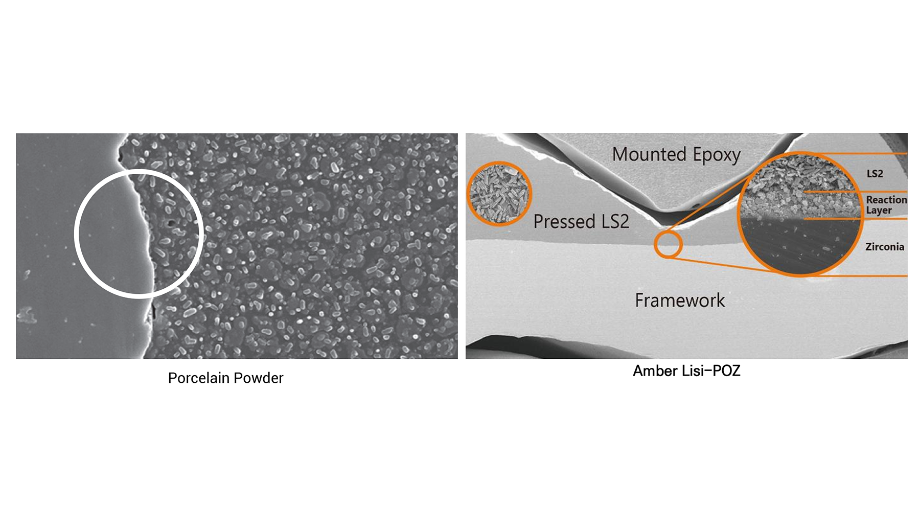 Amber® LiSi-POZ veneering has similar translucency to the enamel