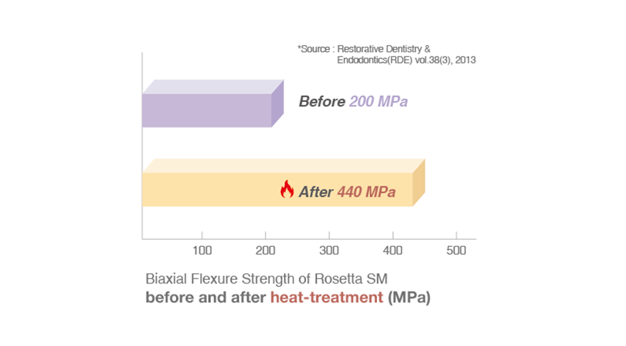 Rosetta SM 专为简便加工与长期临床表现而设计。 其预晶化状态下的抗弯强度为 200 MPa,确保铣削过程顺畅高效,并最大限度地减少工具磨损。 经过晶化处理后,强度提升至 440 MPa,为包括牙冠、嵌体、覆盖体和贴面在内的多种修复体提供卓越的耐久性。